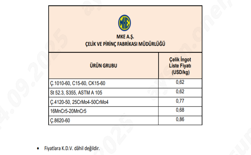 İNGOT FİYAT LİSTESİ
